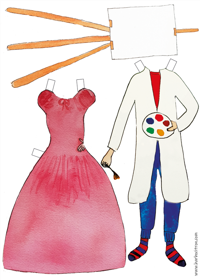 Poupée de papier, peinte à la main à l'aquarelle Jasmine, une princesse à lunettes artiste rebelle