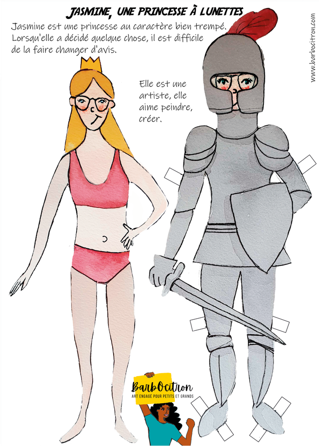 Poupée de papier Jasmine la princesse à lunettes
