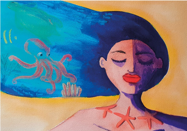 Carte postale réalisée à partir de l'aquarelle numérisée sur un papier 300 mg.